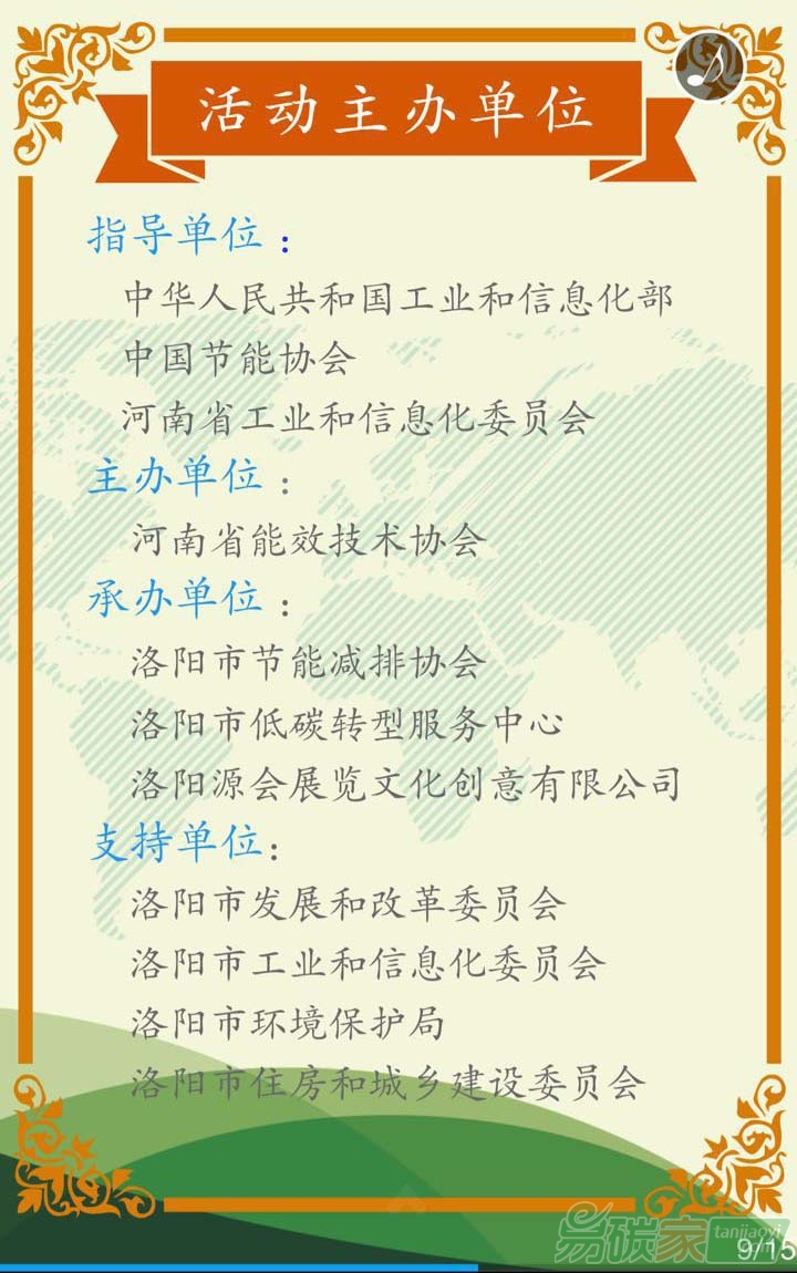 減排協(xié)會、市低碳轉(zhuǎn)型服務(wù)中心、洛陽源會展覽文化創(chuàng)意有限公司承辦。活動主題為“節(jié)能有我 綠色共享”,組織優(yōu)秀產(chǎn)品交流和展示,加速節(jié)能、低碳、環(huán)保產(chǎn)品裝備與技術(shù)