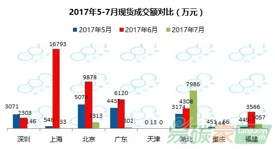 深圳成交6.9萬噸,與6月相比下降92.6%;上海現(xiàn)貨成交1萬噸,比6月下降99.8%;北京成交54.1萬噸,與6月相比下降82.2%;廣東成交26萬噸,與6月相比下降94.4%;天津無交易;湖北成交619.1萬噸,與6月相比上升了115.6%;重慶成交33.8萬噸,與6月相比上升了4.5%;福建成交39.3萬噸,比6月下降74.4%。