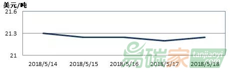 2018年5月14日至2018年5月20日,新西蘭碳單位(New Zealand Unit, NZU)的現(xiàn)貨價(jià)格在21.2-21.3美元/噸之間。
