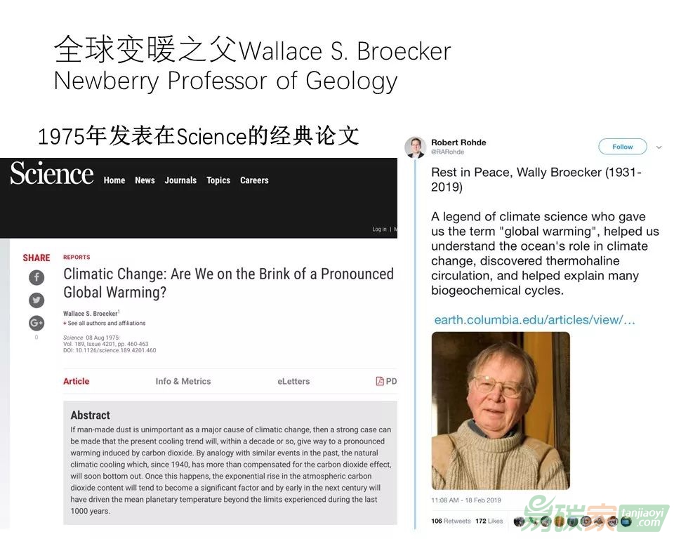 問題很早有一些學(xué)者發(fā)現(xiàn)了,這是今年去世的一個很有名的哥倫比亞大學(xué)的教授,他在1975年的時候就認(rèn)識到全球氣候變化,但是那個時候有很多人反對他。
