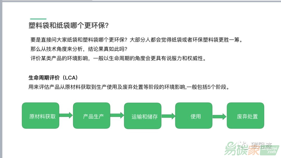 市場(chǎng)中。 筆者團(tuán)隊(duì)近期受邀參加中國(guó)塑料袋大會(huì),并做了一個(gè)關(guān)于塑料袋和紙袋誰(shuí)更低碳的分享演講,相信絕大多數(shù)人跟筆者一樣,都會(huì)主觀認(rèn)為紙袋更環(huán)保低碳,塑料袋一直被詬病造成了環(huán)境污染,但是如果研究的落腳點(diǎn)放在
