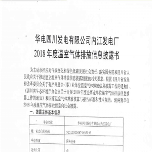 • 華電四川發(fā)電有限公司內(nèi)江發(fā)電廠2018年度溫室氣體排放信息披露書